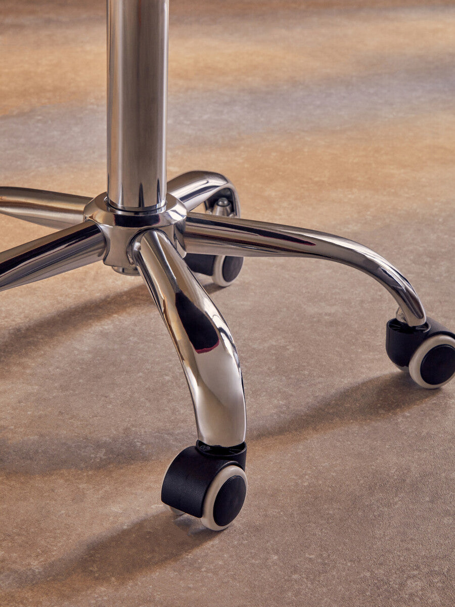 The softly cushioned seat and tapered backrest are enhanced with classic button detailing, giving the chair a refined, boutique-inspired look. Designed for smooth movement and flexibility, the swivel base and five hooded castor wheels allow you to glide effortlessly across your workspace. Height adjustment ensures you can tailor the chair to your desk setup for comfortable, supported seating throughout the day.