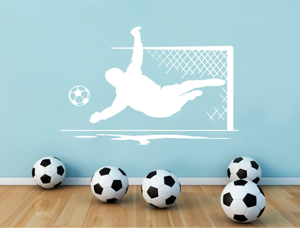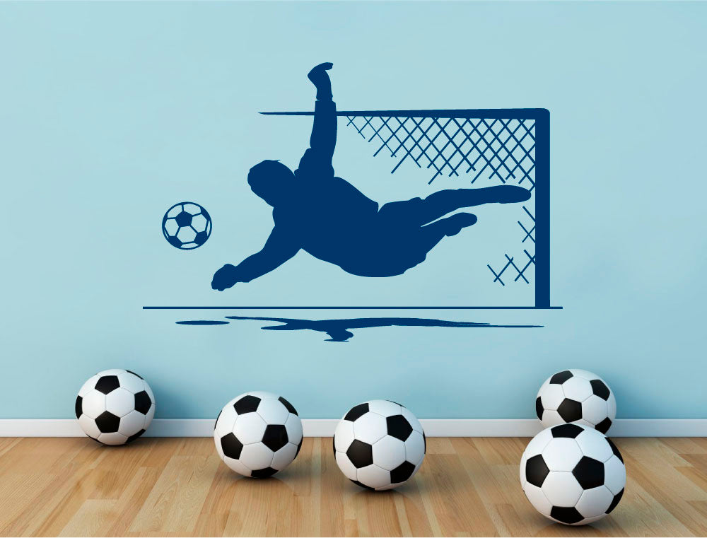 This high-quality vinyl decal features a dynamic goalkeeper in action, adding energy and style to bedrooms, playrooms, or sports-themed spaces.