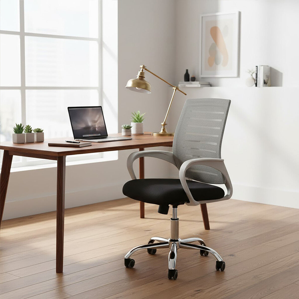 Designed for productivity and all-day comfort, the Fredrick Grey Home Office Chair is a practical addition to both home workspaces and professional offices. Upholstered in durable nylon, this chair offers a supportive and breathable seating experience that stands up to daily use.