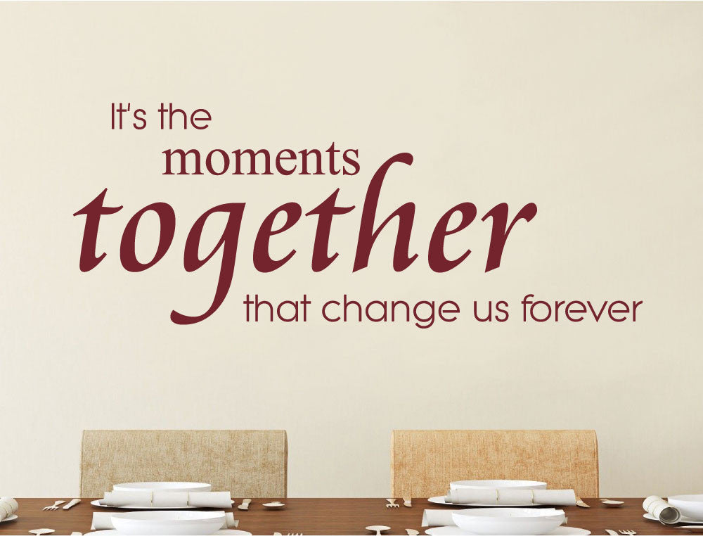 Bring warmth and meaning to your home with this “It’s the moments together” wall sticker quote. Featuring the heartfelt wording “It’s the moments together that change us forever,” this vinyl wall decal adds a loving, thoughtful touch to any room.