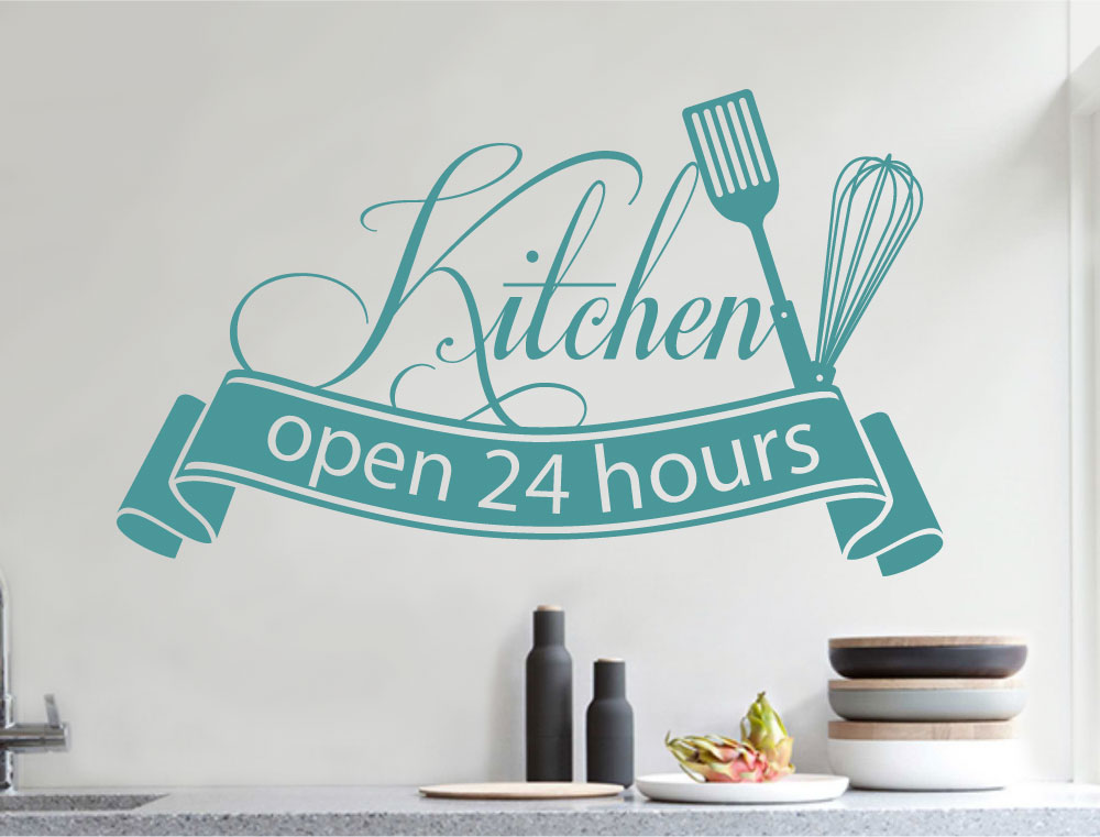 Kitchen Open 24 Hrs Wall Sticker – Cafe or Kitchen Decor