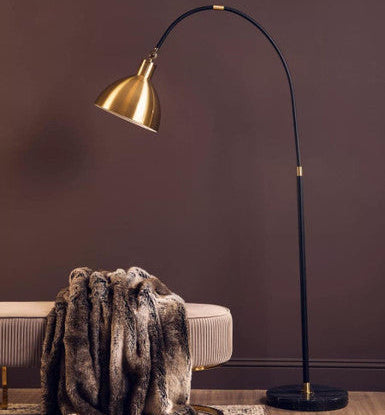 This black and gold floor lamp works beautifully with velvet upholstery, marble surfaces, and warm wood tones, making it a versatile addition to living rooms, bedrooms, and open-plan spaces.
