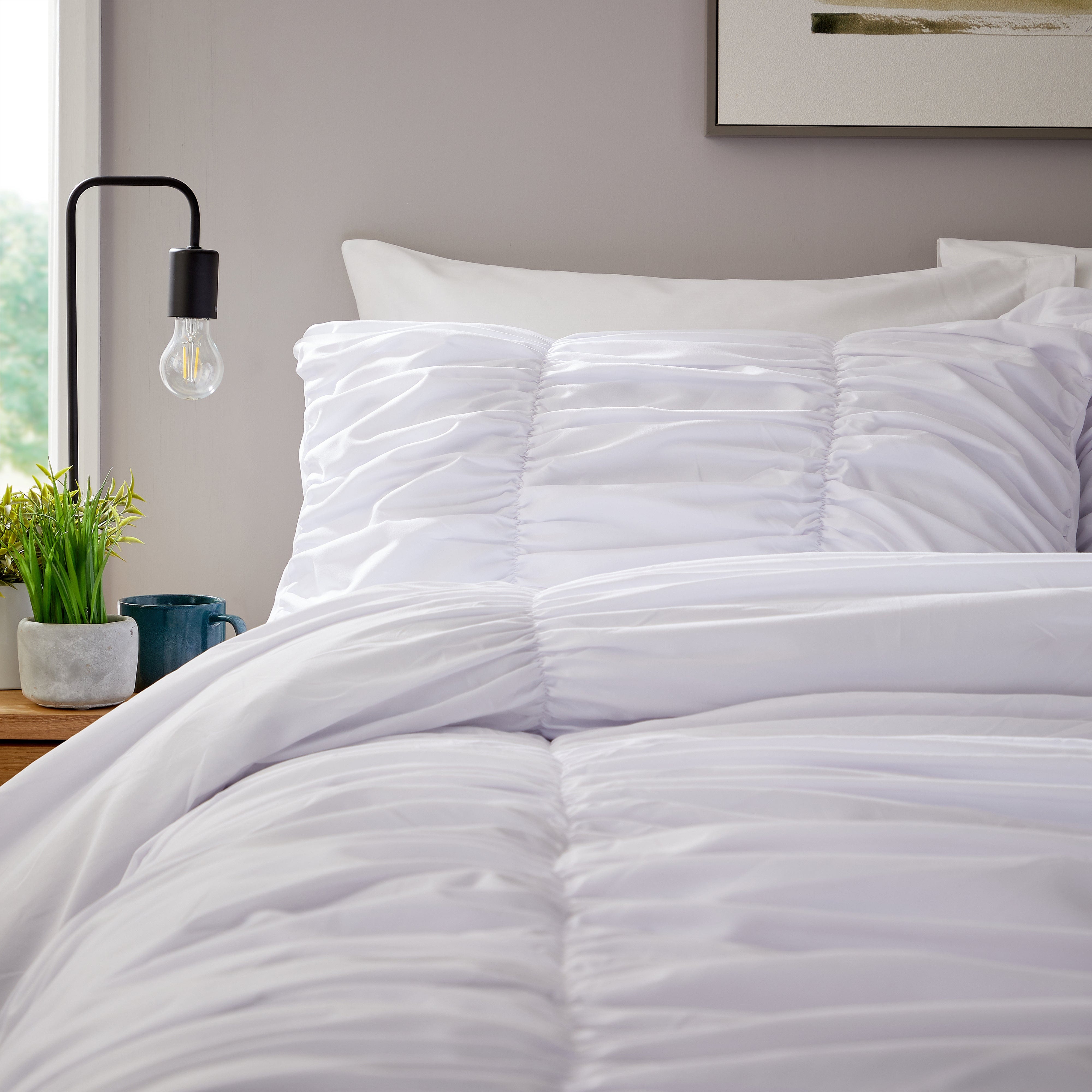 Olivia Rocco Ruched White Microfibre Duvet Cover & Pillowcase Set – Super Soft