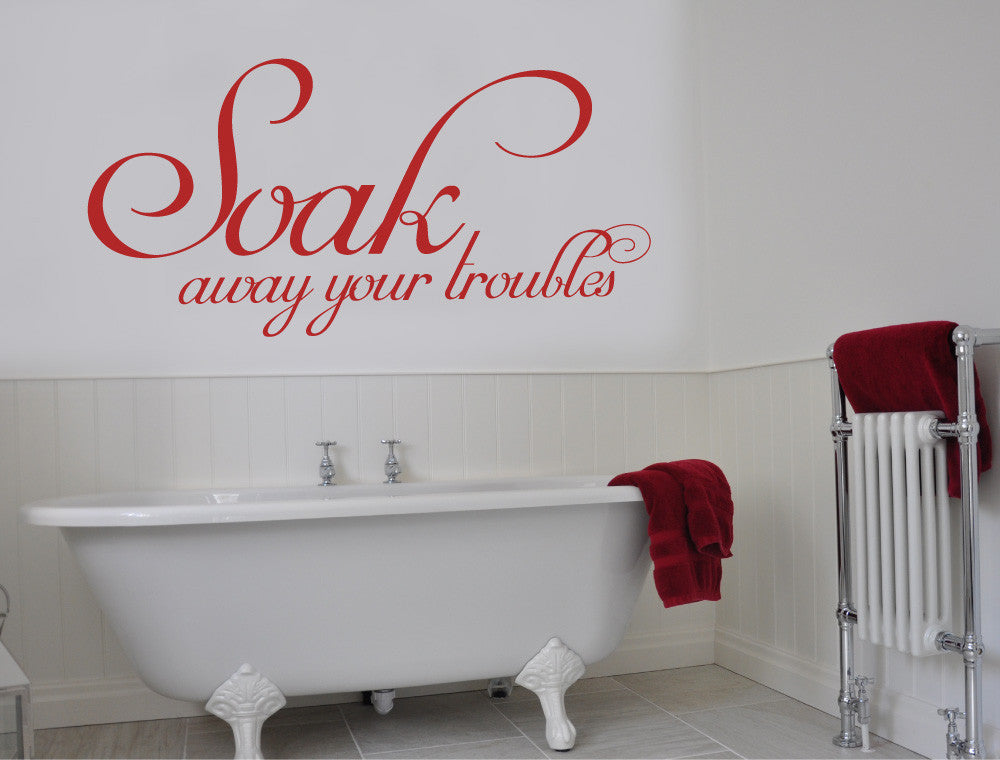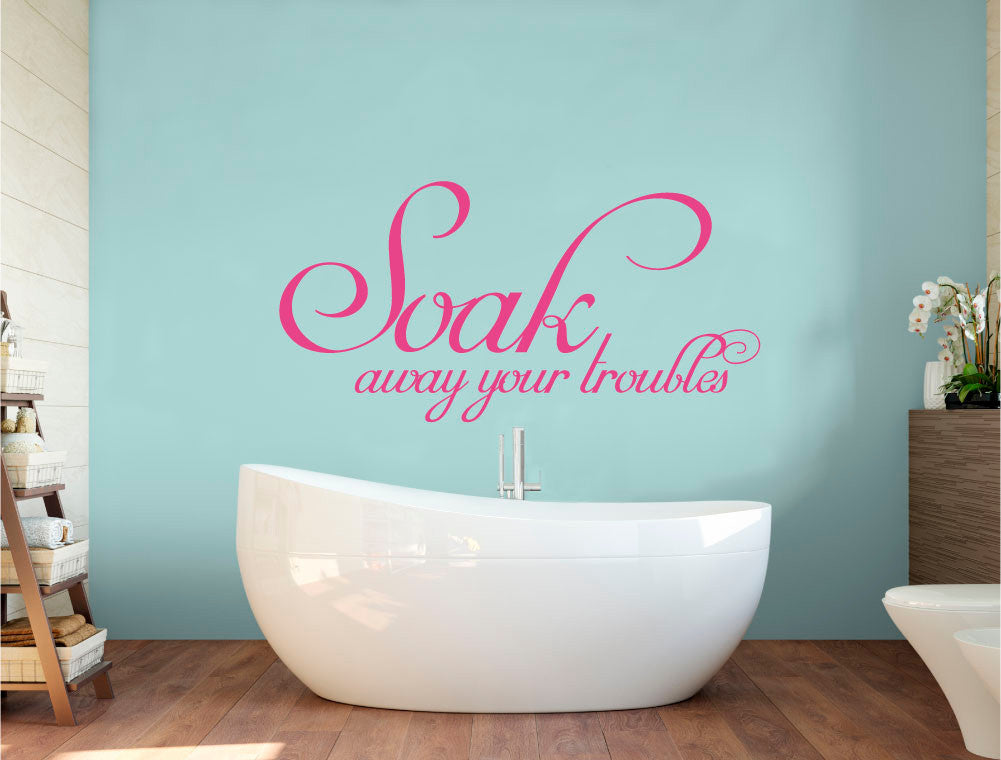 Create a calm, spa-like atmosphere in your bathroom with this large “Soak Away Your Troubles” wall sticker decal.